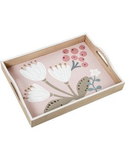 Bandeja Madera Decorada Rosa Flores Blancas - 40X30X7CM