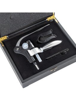 Sacacorchos de Palanca y Descapsulador en Caja Madera Negra